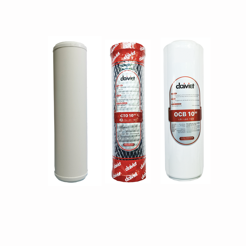 Combo 3 lõi lọc thô Đại Việt CERAMIC - CTO GÁO DỪA - OCB chính hãng sử dụng cho máy lọc nước Đại Việt và các dòng sản phẩm máy lọc nước Ro trên thị trường.
