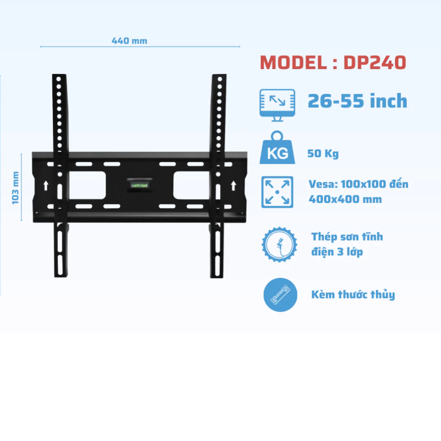 Giá treo TiVi thẳng Daikiosan DP240 là sự lựa chọn lý tưởng dành cho các loại tivi LED, LCD, Plasma và cả màn hình cong. Với thiết kế chắc chắn và tính năng tiện lợi, DP240 sẽ mang đến không gian nội thất tinh tế và hiện đại cho ngôi nhà hoặc văn phòng của bạn.